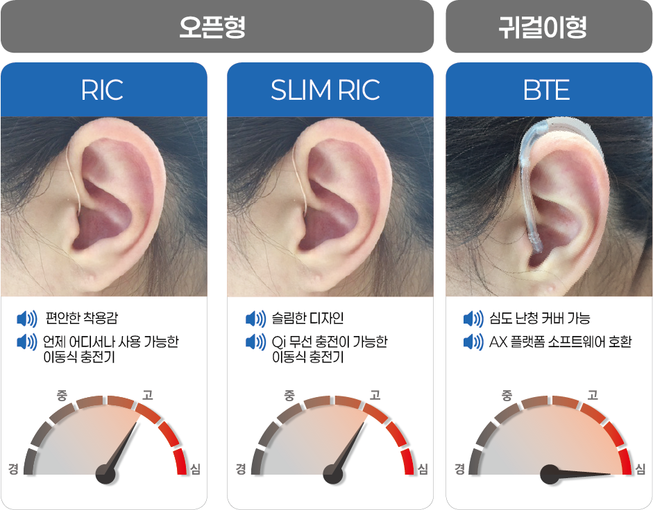 청력 손실의 유형, 사용자의 환경에 따라 적합한 보청기를 추천드립니다.